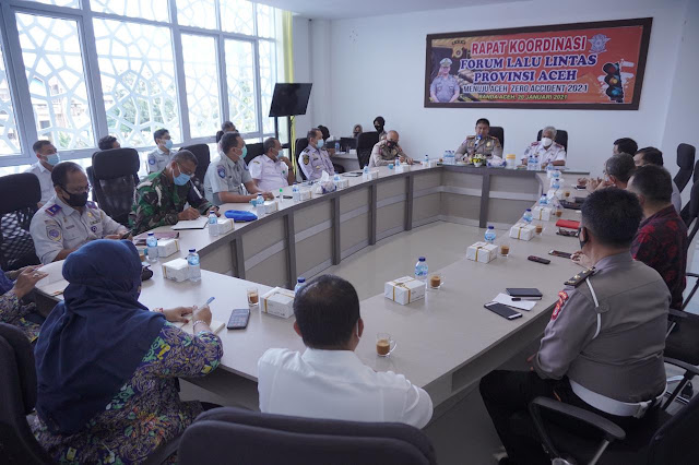 Rakor Forum Lalulintas Aceh diikuti oleh Dirlantas Aceh, Kepala Balai Jalan Nasional aceh, Kepala Balai Pengelola transportasi darat wilayah 1 Aceh, Jasa raharja, Kadis PUPR prop aceh, Kadishub prop aceh, Organda, Kadis diknas Provinsi aceh, Kasat Lantas Polresta Banda Aceh, Kadis hub kab kota, Kadis PU kab kota, Dandenpom Iskandar muda dan kasat Lantas Aceh Besar ()