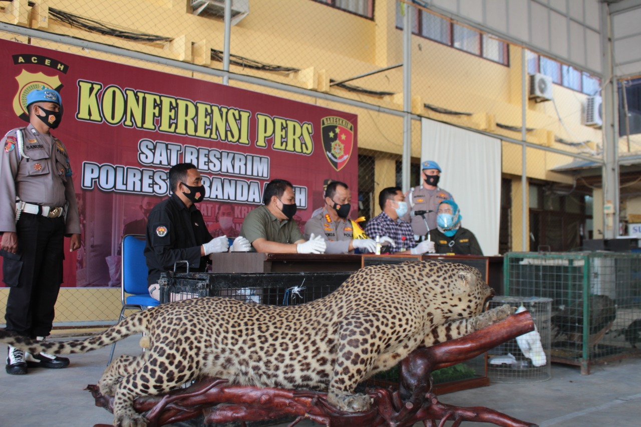 Kapolresta Banda Aceh, Kombes Pol Joko Krisdiyanto, SIK didampingi Kasatreskrim AKP M Ryan Citra Yudha, SIK dalam konferensi pers mengatakan, pada kesempatan ini kami akan melakukan konferensi pers terkait temuan atau informasi dari warga bahwa ada orang yang memelihara, menyimpan atau memiliki satwa yang dilindungi.