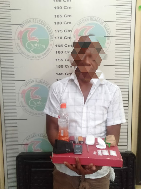 Team Oprasional Sat Narkoba polres Aceh Tamiang dibawah pimpinan Bripka Rio Pratama berhasil mengamankan (Menagkap) seorang laki laki berinisial MY Alias Cb Bin MD, (36 Th), warga Kecamatan Manyak Payet, Kabupaten Aceh Tamiang, Sabtu (16/01/2021), pukul 04,30 Wib.