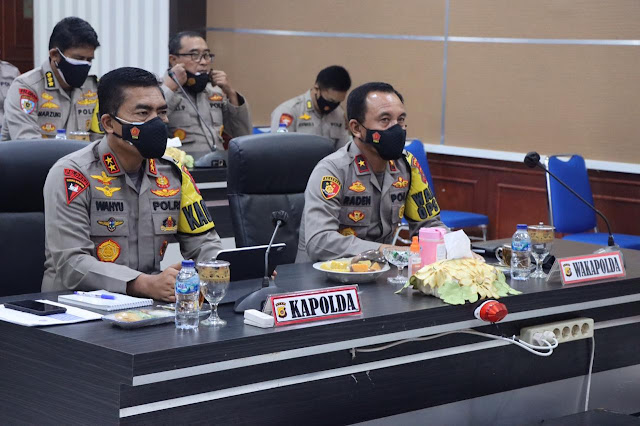 Habanusantara.net, Banda Aceh – Kapolda Aceh Irjen Pol. Drs. Wahyu Widada, M. Phil, Selasa (16/2/21) menerima dan mendengarkan sambutan Kapolri Jenderal Polisi Drs. Listyo Sigit Prabiwo, M. Si, yang menyampaikan sambutannya secara virtual di Rapim Polri Tahun 2021.