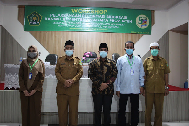 Habanusantara.net, Banda Aceh – Dalam rangka mewujudkan perdikat wilayah bebas dari korupsi (WBK) dan wilayah birokrasi bersih dan melayani (WBBM). Kantor Wilayah Kementerian Agama Provinsi Aceh menggelar workshop reformasi birokrasi.