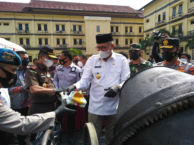 “Pengungkapan keberadaan narkoba seberat 404,9 kilogram ini sungguh capaian besar dalam misi menyelamatkan generasi Aceh. Pemerintah Aceh, dan seluruh rakyat Aceh, memberikan apresiasi yang setinggi-tingginya,”kata Gubernur Nova saat memberi sambutan dalam acara pemusnahan barang bukti Narkotika, di Lapangan Mapolda Aceh, Rabu, (10/3/2021).