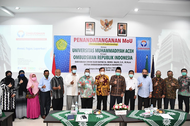 Setelah memberi arahan kepada Insan Ombudsman Aceh, Ketua Ombudsman RI langsung menuju ke Universitas Muhammadiyah (Unmuha) untuk melanjutkan kegiatan penandatanganan MoU antara Ombudsman dengan Unmuha.