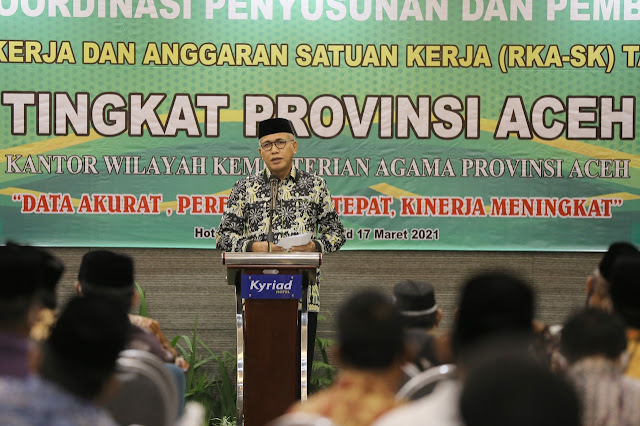 Tidak lupa Kakanwil Kemenag Aceh mengucapkan terima kasih dan penghargaan yang setinggi-tingginya kepada Pemerintah Aceh yang selama ini ikut mendukung program kerja Kementerian Agama di Aceh.
