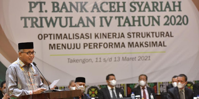 Sebelumnya, Direktur Utama Bank Aceh Syariah, Haizir Sulaiman melaporkan, selama pandemi melanda sepanjang tahun 2020 pertumbuhan perekonomian mengalami kemunduran, termasuk pertumbuhan keuangan perbankan. Namun demikian, berkat kinerja dan dukungan semua pihak pertumbuhan keuangan Bank Aceh Syariah tahun lalu tetap berada pada jalur positif meskipun tidak sebaik tahun-tahun sebelumnya.