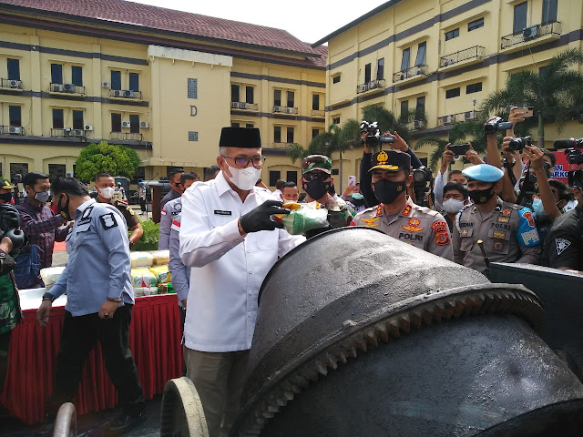 Pemusanahan barang haram itu dipimpin langsung oleh Kapolda Aceh Irjen Pol Wahyu Widada turut dihadiri Gubernur Aceh Nova Iriansyah, Wakil Ketua DPRA Safaruddin, Perwakilan BNNP Aceh dan sejumlah unsur forkopimda lainnya.