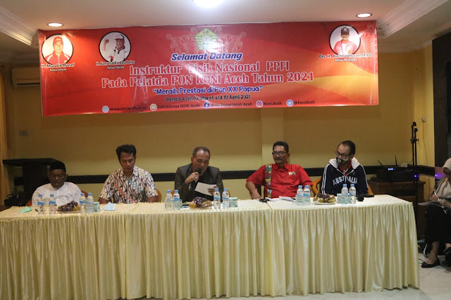 Ketua Umum KONI Aceh, Muzakir Manaf yang diwakili Ketua Harian Kamaruddin Abubakar atau Abu Razak dalam sambutan sekaligus membuka kegiatan program latihan fisik bagi pelatih dan atlet Pelatda di Hotel Lading, Banda Aceh, Banda Aceh, Jumat (13/3/2021) menyebutkan, kegiatan tersebut merupakan suatu bagian penting dari persiapan atlet menghadapi PON Papua.