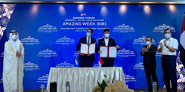 Penandatanganan itu turut disaksikan Menteri Koordinator Bidang Kemaritiman dan Investasi (Menko Marves) Luhut Binsar Pandjaitan, Menteri Pertahanan Prabowo Subianto, Menteri Perhubungan Budi Karya Sumadi, Kepala Badan Koordinasi Penanaman Modal (BKPM) Bahlil Lahadalia serta Menteri Energi Uni Emirat Arab, Suhail Al Mazroui.