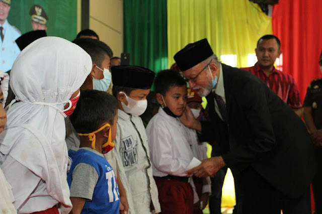 Pada kesempatan tersebut, Wali Nanggroe juga turut menyerahkan santunan secara simbolis kepada puluhan anak yatim yang ada di Gayo Lues.