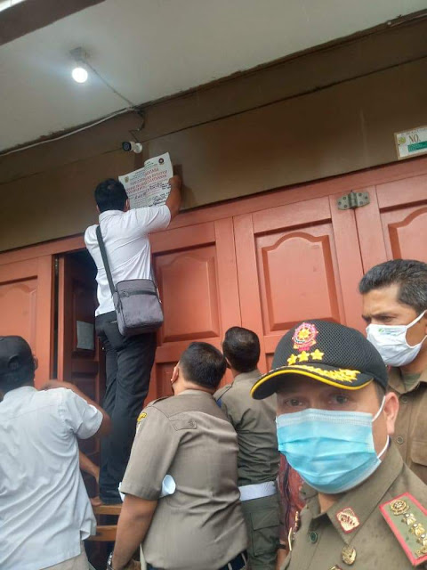 Habanusantara.net, BANDA ACEH – Petugas gabungan Satuan Satpol PP/WH Kota Banda Aceh dan pihak kepolisian melakukan penyegelan Café Soho yang berada di jalan Sri Ratu Syafiatuddin, Peunayong, Kamis (22/4/2021)