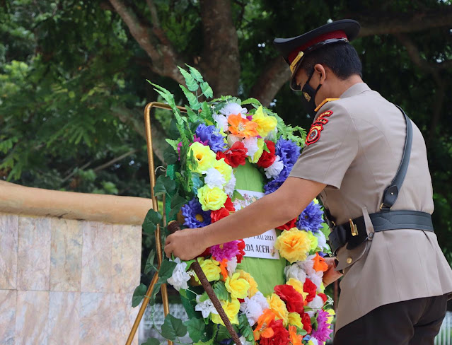 Kabid Humas Polda Aceh Kombes Pol. Winardy, S. H., S.I.K. M. Si, mengatakan, Kapolda Aceh menggelar ziarah dan berdo’a untuk para pahlawan itu dalam rangkaian upacara ziarah dan tabur bunga dalam rangka Hari Bhayangkara ke 75 Tahun 2021 di TMP tersebut.