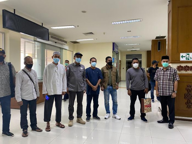 Kepala Dinas Sosial Aceh, Dr. Yusrizal, M.Si didampingi Kepala Bidang Linjamsos Syukri, S.Sos, M.Pd dan Kepala Seksi PSKBS, Fajri Mursyidan, SE, serta turut hadir Anggota DPR Aceh, Iskandar Usman Alfarlaki saat menyambut langsung kepulangan 1 (satu) orang nelayan Aceh dari Myanmar di Bandara Sultan Iskandar Muda (SIM) Blang Bintang, Minggu (02/05/2021) sekitar pukul 15.00 WIB.