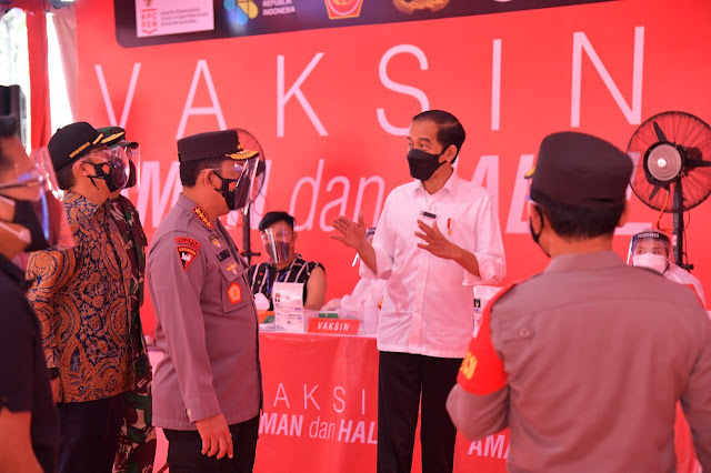 Presiden Jokowi Tinjau Vaksinasi Massal Jelang HUT Bhayangkara ke-75
