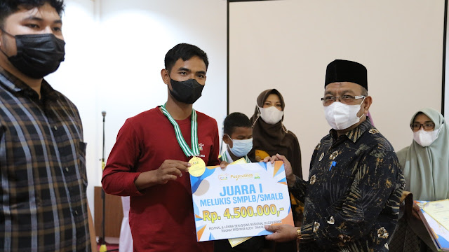 Kepala Dinas Pendidikan Aceh, Drs. Alhudri, MM diwakili Kepala Bidang Pembinaan SMA dan PKLK, Hamdani, M.Pd saat menutup ajang FLS2N tingkat Provinsi Aceh tahun 2021, Kamis (29/7/2021) menyampaikan ajang FLS2N ini digelar untuk mengasah keterampilan peserta didik, khususnya di bidang seni. Dinas Pendidikan Aceh secara khusus mengapresiasi prestasi Anak Berkebutuhan Khusus (ABK) yang ada di Aceh.
