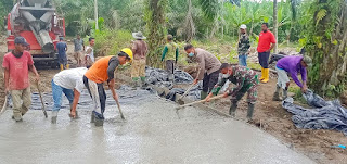 Kehadiran Iptu Amryn bukan untuk melihat proses pengecoran jalan sepanjang 2.545 meter dengan lebar 4 meter itu. Tetapi ikut bekerja bersama personel Satgas dan warga yang ada di lokasi.