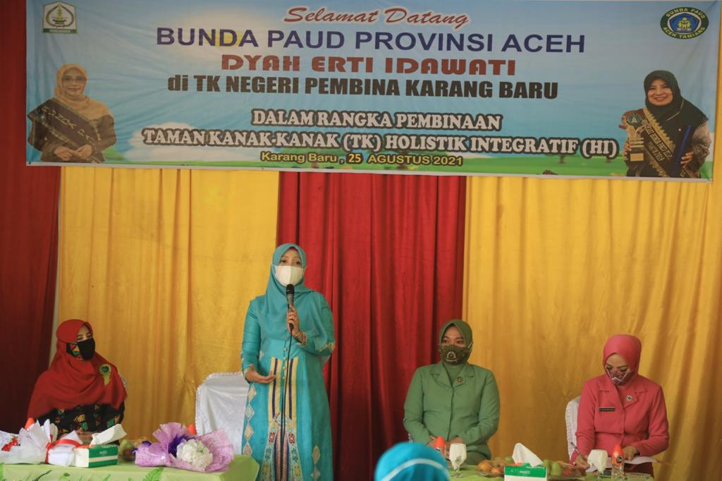 Habanusantara.net, KUALA SIMPANG – Bunda Pendidikan Anak Usia Dini (PAUD) Aceh Dyah Erti Idawati, mengingatkan, dalam implementasi pendidikan anak usia dini berbasis Holistik Integratif (HI) harus memadukan lima layanan utama untuk mengoptimalkan semua aspek pengembangan anak.