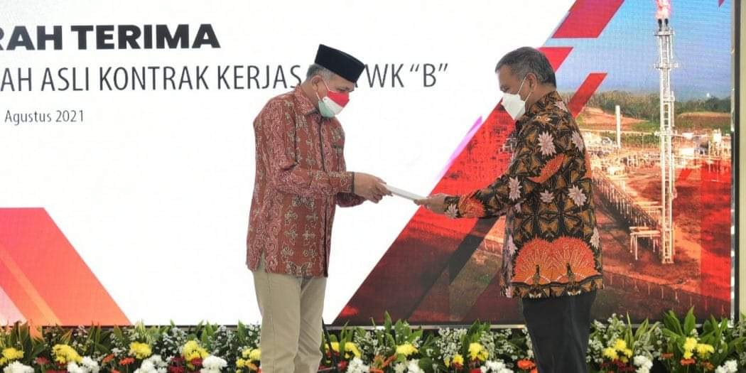 Habanusatara.net, JAKARTA – Gubernur Aceh Ir. H. Nova. Iriansyah MT., menerima Naskah Asli Kontrak Kerjasama Blok “B” di gedung Kementerian Energi dan Sumber Daya Mineral (ESDM) Republik Indonesia di Jakarta Pusat, Rabu, 25 Agustus 2021.
