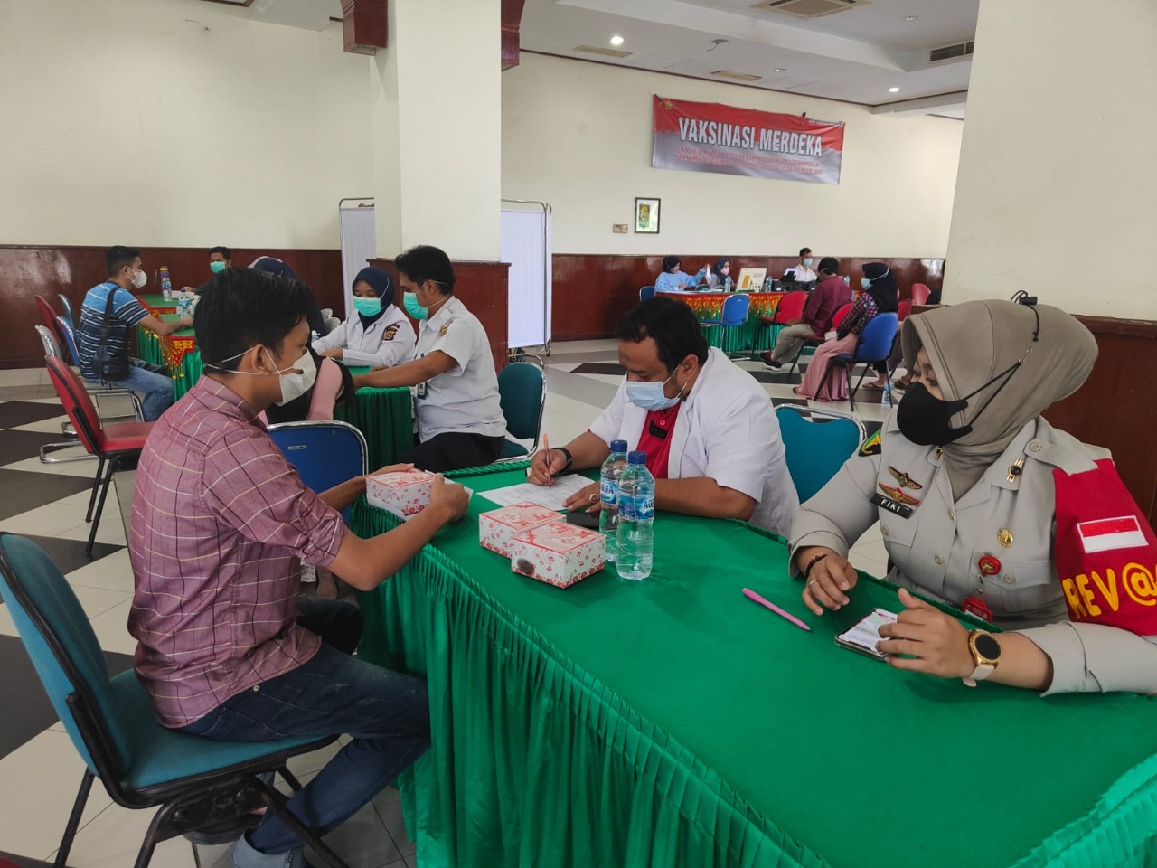 Kegiatan Vaksinasi Covid-19 program Polresta Banda Aceh Goes To kampus bagi para mahasiswa berlangsung Rabu,(15/9/2021) di Kampus Universitas Syiah Kuala, Banda Aceh.