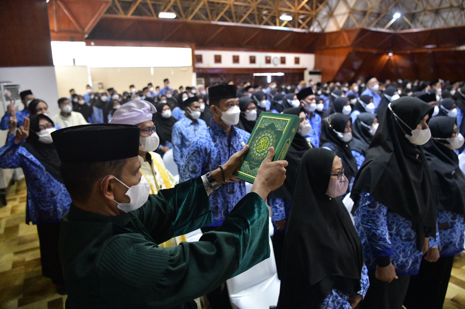 Pengambilan sumpah yang diselenggarakan di Anjong Mon Mata itu, dilaksanakan sebagai bagian dari penyegaran kembali agar para PNS lama maupun yang baru untuk bersumpah dan berjanji serta berkomitmen dalam melaksanakan tugasnya, sesuai dengan Peraturan Pemerintah Tentang Sumpah dan Janji PNS.
