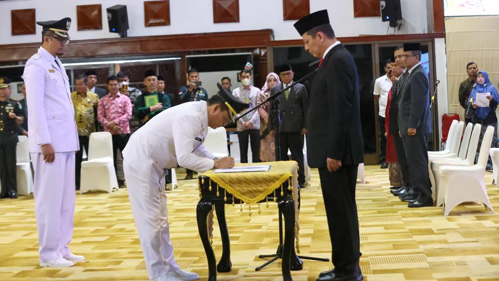 Habanusantara.net, BANDA ACEH– Penjabat Gubernur Aceh, Achmad Marzuki, melantik secara resmi Marthunis, S.T, D.EA, dan Ahmadlyah, SH sebagai Penjabat Bupati Aceh Singkil dan Simeulue, di Anjong Mon Mata Pendopo Gubernur, Kamis, (21/7/2022). Pada kesempatan itu, Achmad Marzuki berpesan kepada kedua kepala daerah tersebut agar menghidupkan sektor usaha mikro kecil menengah (UMKM) sebagai penopang perekonomian masyarakat.