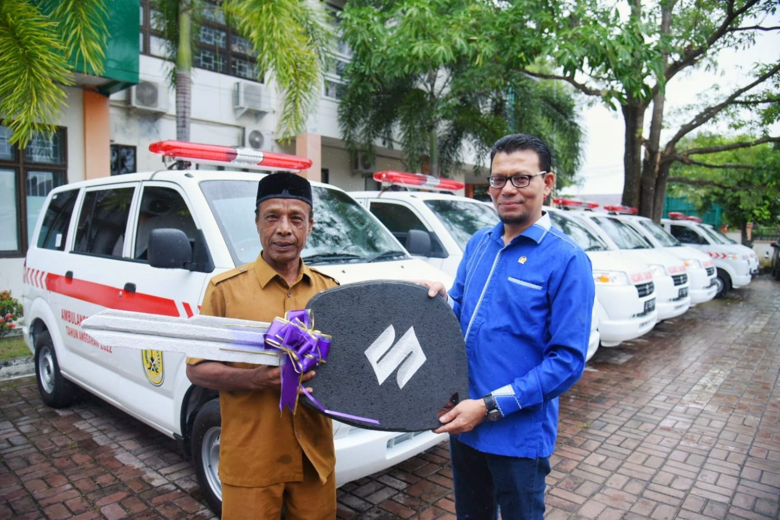 Dalam upaya memenuhi layanan kesehatan bagi masyarakat, politisi muda Partai Amanat Nasional (PAN), menyerahkan bantuan 2 unit mobil ambulance untuk Gampong Pango Raya dan Gampong Ilie di halaman Kantor Dinas Kesehatan Kota Banda Aceh, Selasa (4/10/2022).