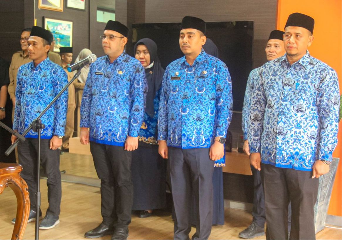 Aulia Putra (Dua dari kanan) saat dilantik menjadi Pj Kabag Prokopim Pemko Banda Aceh, senin (14/11/2022) [Foto/Irw]