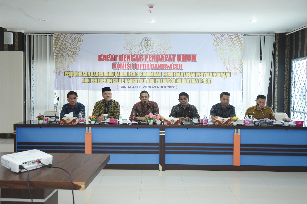 Habanusantara.net – Komisi 1 DPRK Banda Aceh menggelar Rapat Dengar Pendapat Umum (RDPU) dengan sejumlah pihak dan pemangku kepentingan terkait Rancangan Qanun tentang Pencegahan dan Pemberantasan Penyalahgunaan Peredaran Gelap Narkotika (P4GN). RDPU berlangsung di aula gedung DPRK Banda Aceh, Senin (28/11/2022).