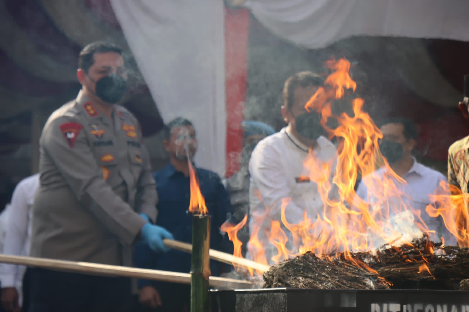 Berdasarkan barang bukti narkotika yang telah diamankan dan dimusnahkan, Polda Aceh berhasil menyelamatkan generasi emas Indonesia sebanyak 915.000 jiwa.