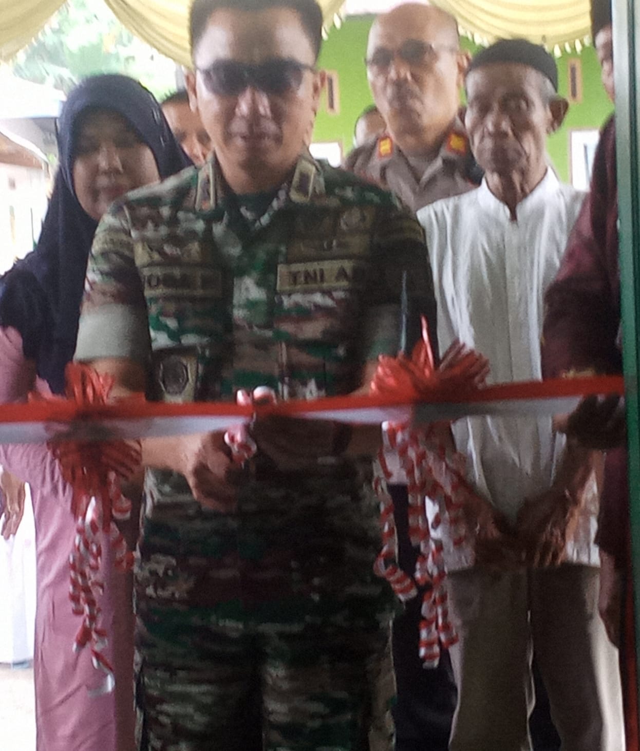 Dandim O204, Letkol Yoga F di dampingi Camat Pantai Labu, Rahmat Azhar Siregar.SSTP.MM, Dan Ramil 23 Beringin Mayor INF AH Pane menggunting pita rumah baru.