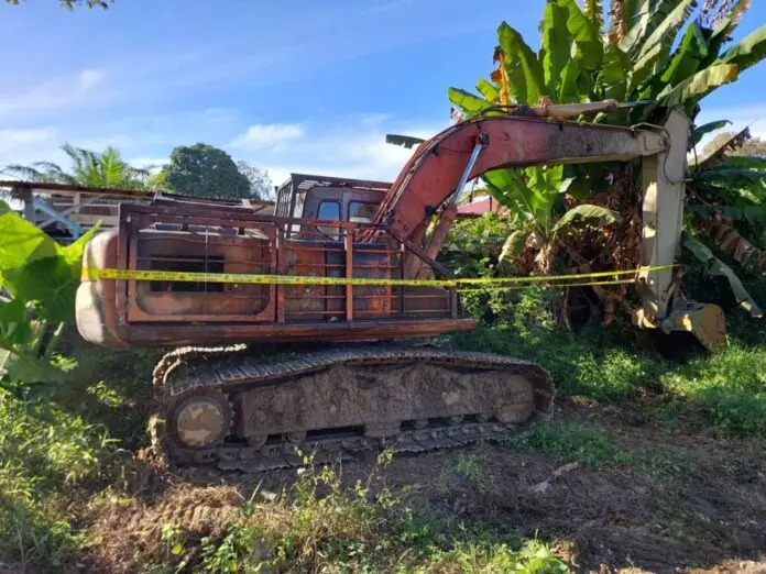 Selain pelaku yang diamankan, petugas juga turut menyita satu unit alat berat excavator merk Hitachi warna orange, satu lembar ambal penyaring warna hijau serta dua buah indang alat pendulang emas.