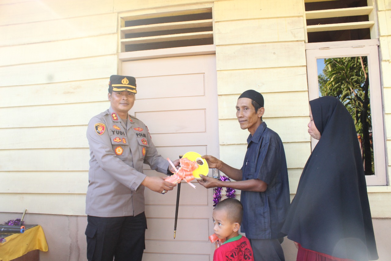 Habanusantara.net, Calang – Abdullah Yakop (40) warga kurang mampu dari Desa Curek Kecamatan Krueng Sabee, Kabupaten Aceh Jaya, menerima rumah layak huni dari Kapolres Aceh Jaya, AKBP Yudi Wiyono, Senin (9/1/2023)