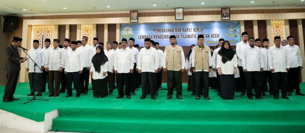 Untuk Pengurus Lembaga Pengembangan Tilawatil Quran (LPTQ) Aceh, dikukuhkan Asisten I Sekda Aceh, M Jafar di Kantor Dinas Syariat Islam Aceh, Jumat (17/2/2023) lalu.