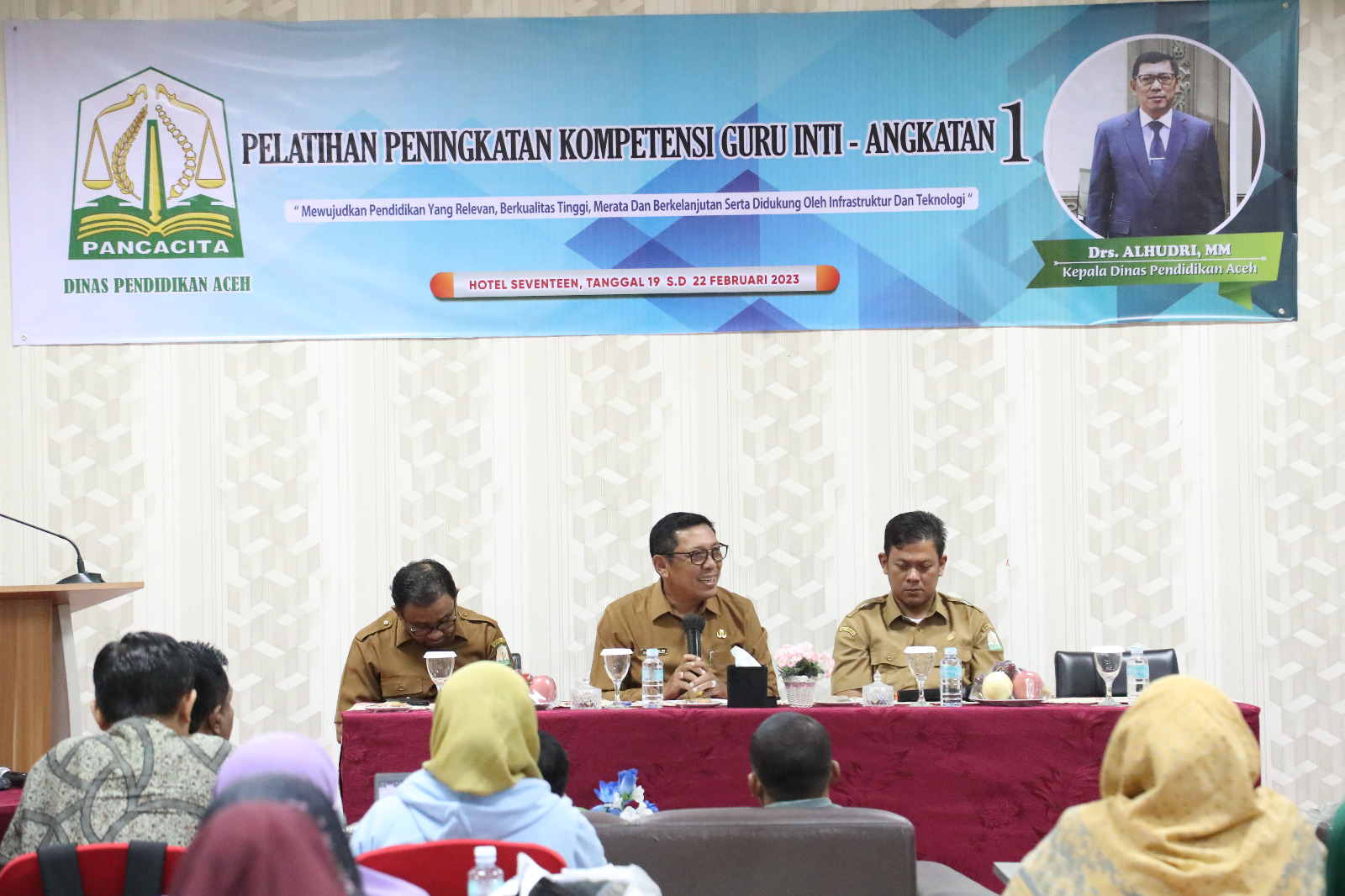 Kepala Dinas Pendidikan Aceh, Drs. Alhudri MM saat membuka kegiatan pelatihan para guru untuk jadi pembimbing siswa -siswa ikut SNBT perguruan tinggi di Banda Aceh, Senin (20/2/2023).(ist).