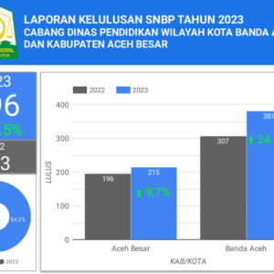 Begitupun juga halnya dengan Kabupaten Aceh Besar yang juga terjadi peningkatan dari 196 meningkat 215 atau 9,69 persen. Sehingga jika ditotalkan peningkatan jumlah lulusan tahun lalu dibandingkan tahun ini dari 503 menjadi 596 atau setara 18,49 persen.