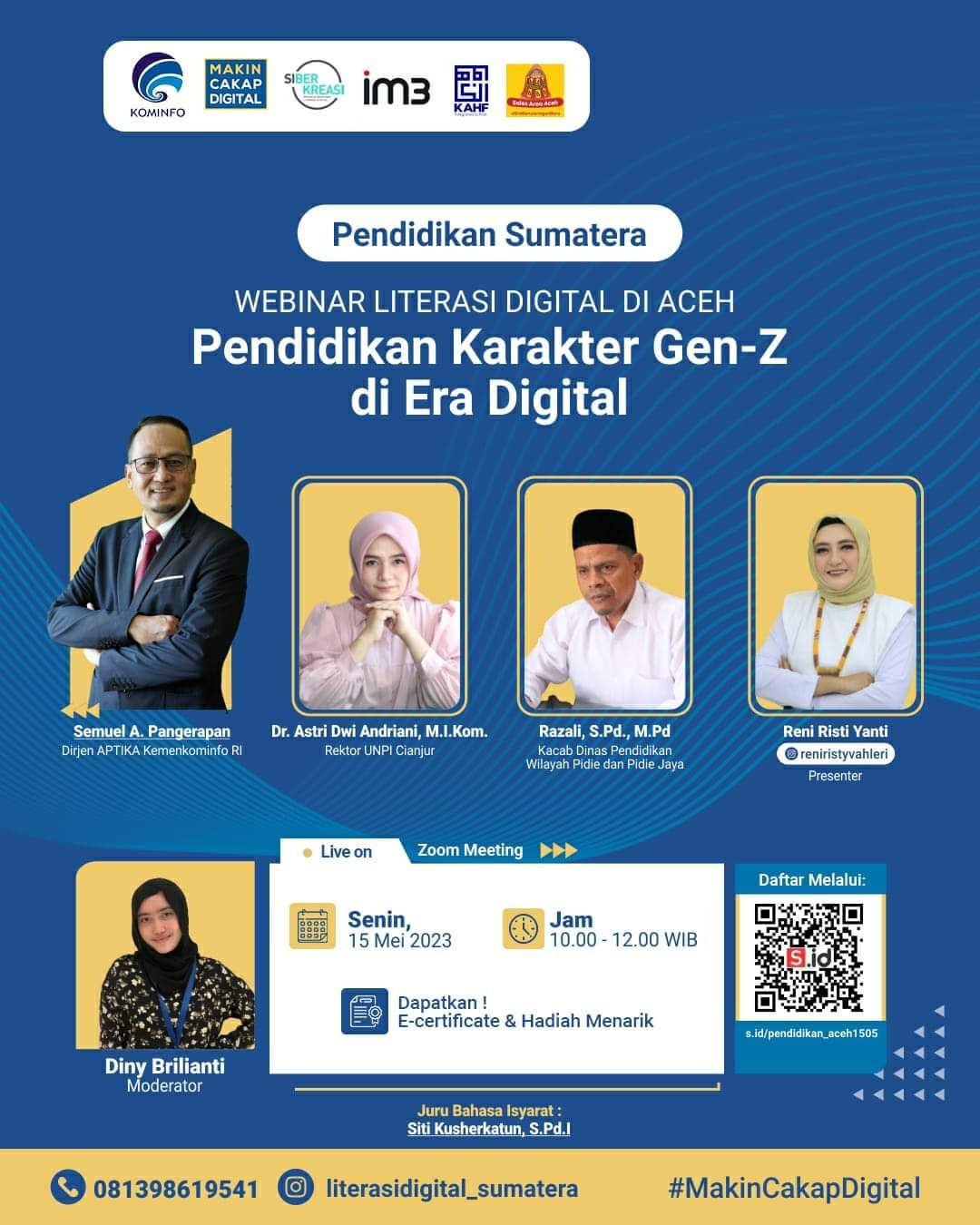 Kegiatan webinar literasi digital yang diselenggarakan oleh Kementerian Komunikasi dan Informatika (Kemenkominfo) di lingkungan pendidikan merupakan salah satu upaya dalam mempercepat transformasi digital di sektor pendidikan menuju Indonesia #MakinCakapDigital.