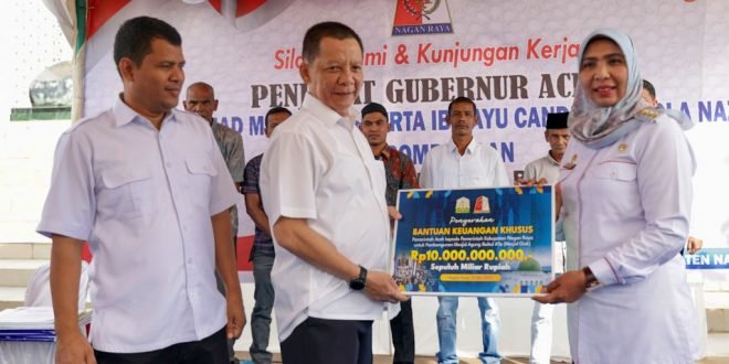 Habanusantara.net– Penjabat Gubernur Aceh, Achmad Marzuki, menyerahkan bantuan keuangan khusus dari Pemerintah Aceh kepada Pemerintah Kabupaten Nagan Raya, untuk pembangunan Masjid Agung Baitul Ala atau Masjid Giok. Bantuan senilai Rp 10 miliar diterima langsung oleh Penjabat Bupati Nagan Raya, Fitriany Farhas di lokasi masjid.