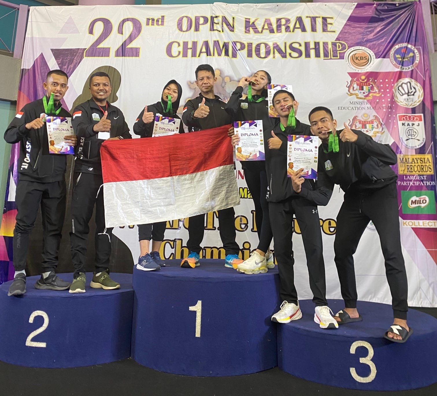 Selain manajer, selama kejuaraan di Malaysia, masing-masing atlet didampingi langsung oleh Pelatih Kepala Shihan M. Arie Marzuki SH, dan Pelatih Sensei Hendra Darmawan SH.