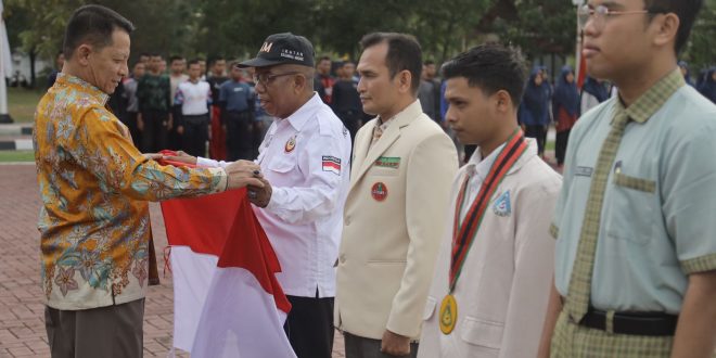 Ribuan pelajar, pengurus organisasi masyarakat, unsur Forkopimda Aceh, dan Kepala Satuan Kerja Perangkat Aceh (SKPA) menyaksikan secara simbolis pembagian bendera tersebut dihalaman kantor Gubernur Aceh, Kamis, (3/8/2023),