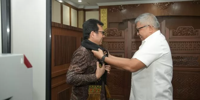 Habanusantara.net – Sekretaris Daerah (Sekda) Aceh Bustami Hamzah, bersama Kepala Dinas Komunikasi, Informasi dan Persandian Aceh Marwan Nusuf, menyambut kedatangan Wakil Menteri Komunikasi dan Informatika RI Nezar Patria, di ruang VIP Bandara Internasional Sultan Iskandar Muda, Blang Bintang, Rabu 25 Oktober 2023.