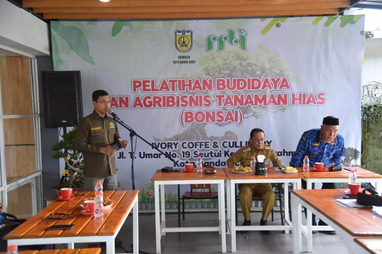 Pelatihan Budi Daya dan Agribisnis Tanaman Hias (Bonsai) yang diinisiasi oleh Fari Nyak Umar digelar selama tiga hari di Ivory Coffee Cullinary, Seutui, pada tanggal 4-6 Desember 2023.