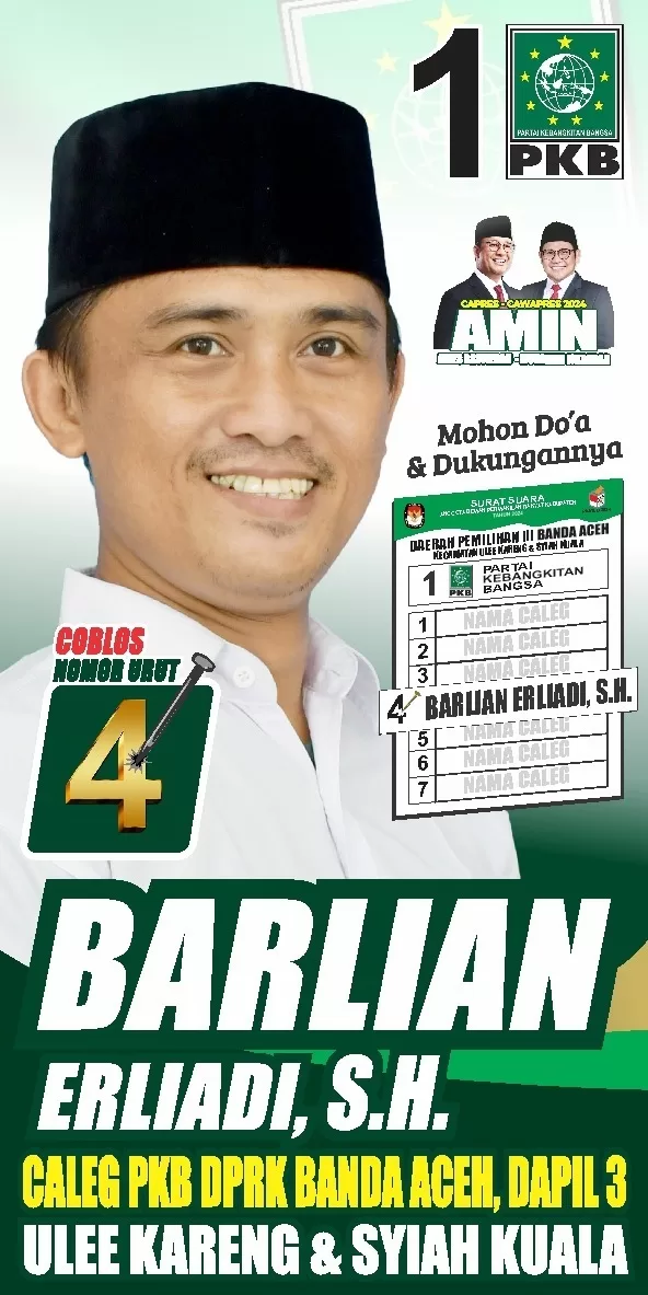Habanusantara .net– Menuju pemilihan anggota Dewan Perwakilan Rakyat Kota (DPRK) Banda Aceh, Barlian Erliadi dari Partai Kebangkitan Bangsa (PKB) memberikan komitmennya untuk mewakili aspirasi rakyat melalui empat program unggulan. Program-program ini menjadi fokus utama penggunaan dana aspirasi jika dia terpilih nantinya.
