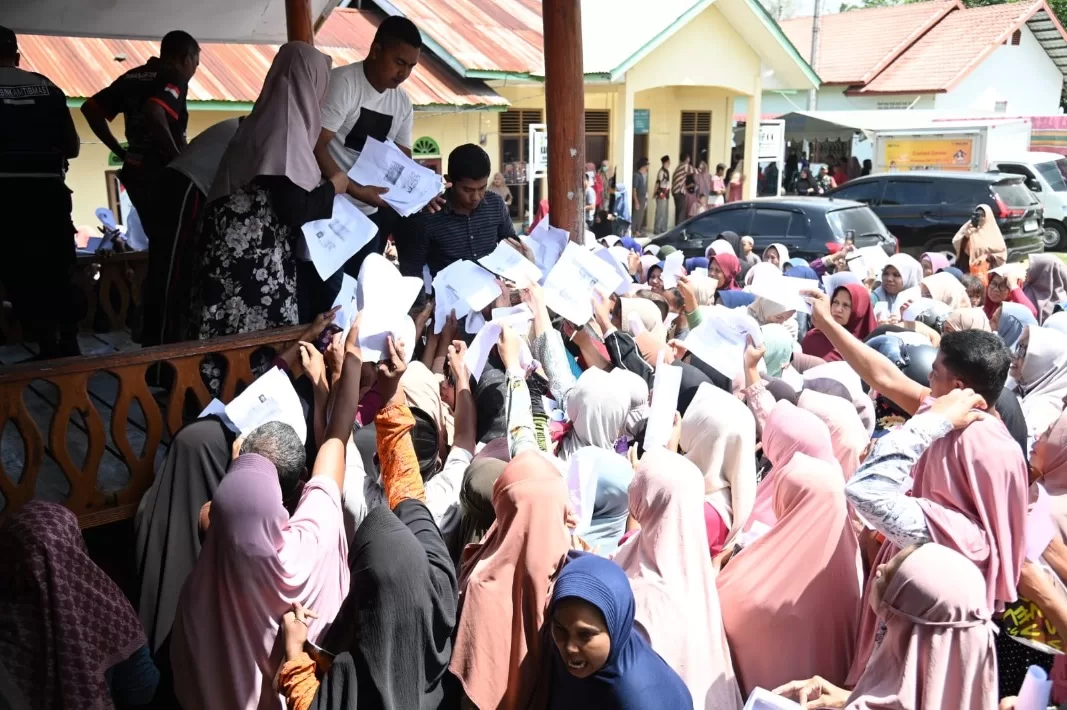 Habanusantara.net – Warga Kuta Baro Kebupaten Aceh Besar mengantri untuk mendapatkan pangan murah menjelang ramadhan di halaman Meunasah Gampong Lamceu Kecamatan Kuta Baro, Aceh Besar, Kamis 29 Februari 2024.