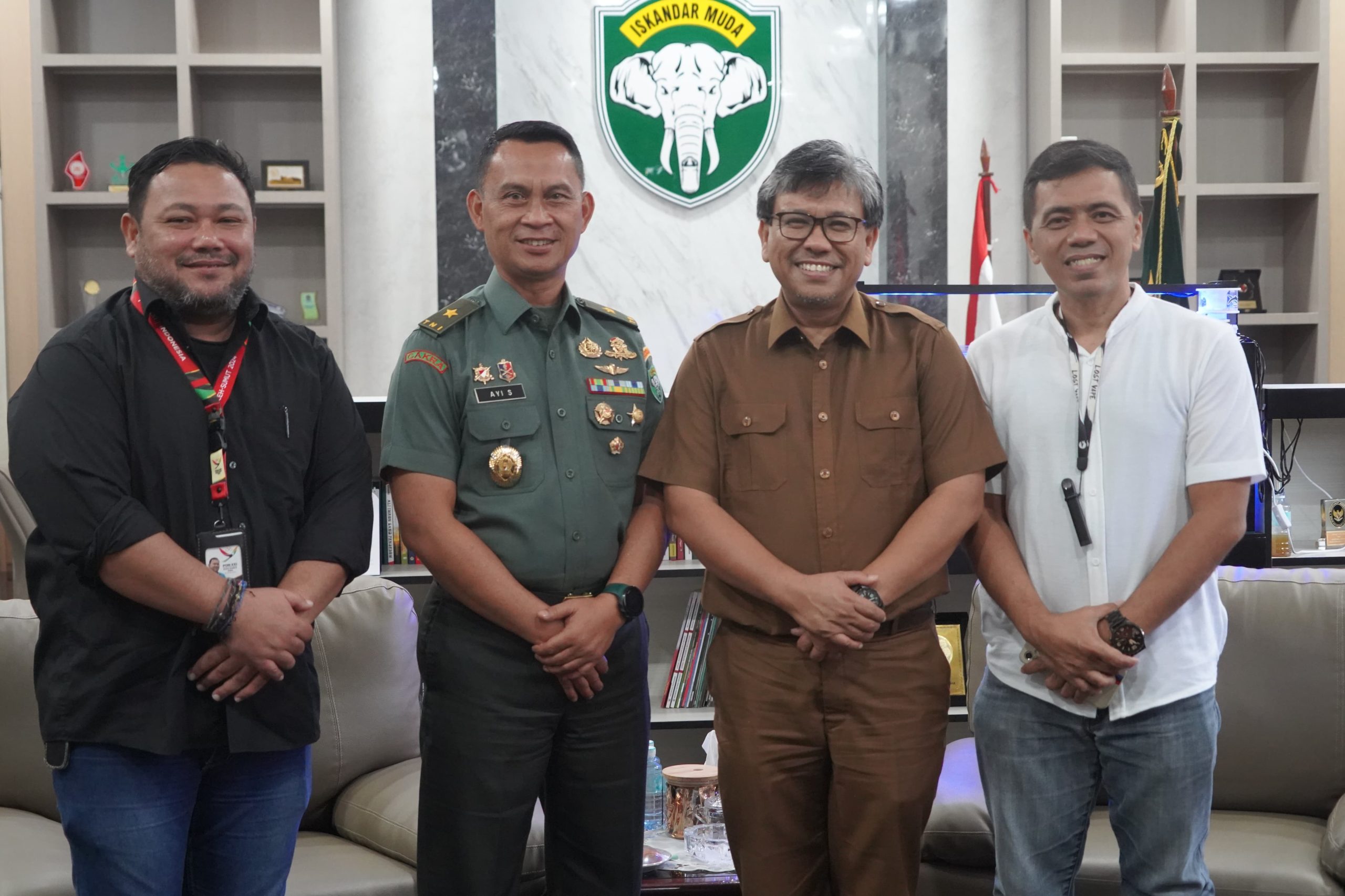 Dalam kesempatan itu, Ramdhani, M.Bus., selaku ketua tim promosi dan pemasaran PB PON XXI, didampingi Azwani Awi dan Ivan Haeqal, menyampaikan apresiasinya atas dukungan dari Kodam IM.