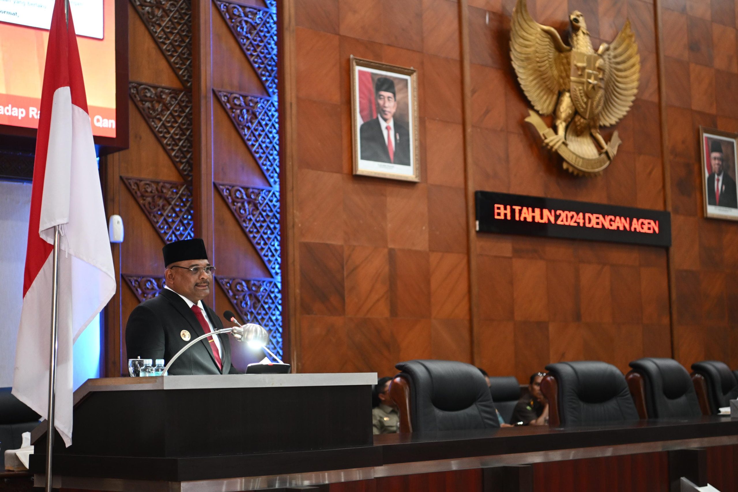 Habanusantara.net– Penjabat Gubernur Aceh Dr,H, Safrizal ZA,M.Si menyampaikan Jawaban/Tanggapan atas Pendapat Badan Anggaran Dewan Perwakilan Rakyat Aceh terhadap Nota Keuangan dan Rancangan Qanun Aceh tentang Anggaran Pendapatan dan Belanja Aceh Tahun Anggaran 2025, pada Rapat Paripurna DPR Aceh Tahun 2024 ini, Selasa (24/9/2024).