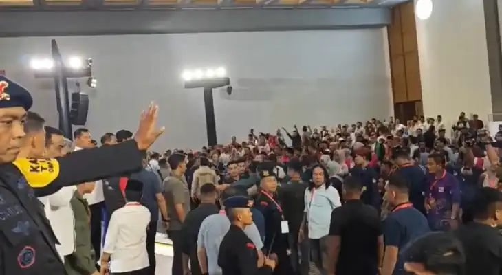 Habanusantara.net, Kericuhan mewarnai debat publik ketiga pasangan calon Gubernur dan Wakil Gubernur Aceh dalam Pilkada 2024, Selasa malam, 19 November 2024, di Ballroom Hotel The Pade, Aceh Besar. Siaran langsung yang ditayangkan oleh iNews TV terpaksa dihentikan karena insiden tersebut.