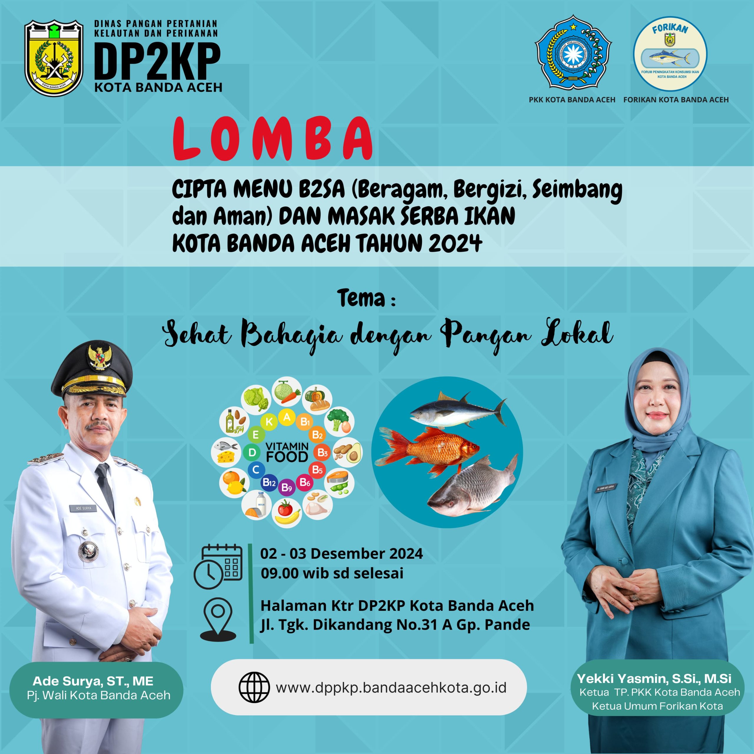 Haba Nusantara.net, Pemerintah Kota Banda Aceh melalui Dinas Pangan, Pertanian, Kelautan, dan Perikanan (DP2KP) Kota Banda Aceh akan menggelar Lomba Cipta Menu Beragam, Bergizi, Seimbang, dan Aman (B2SA) serta Lomba Masak Serba Ikan, Senin (2/12/2024).