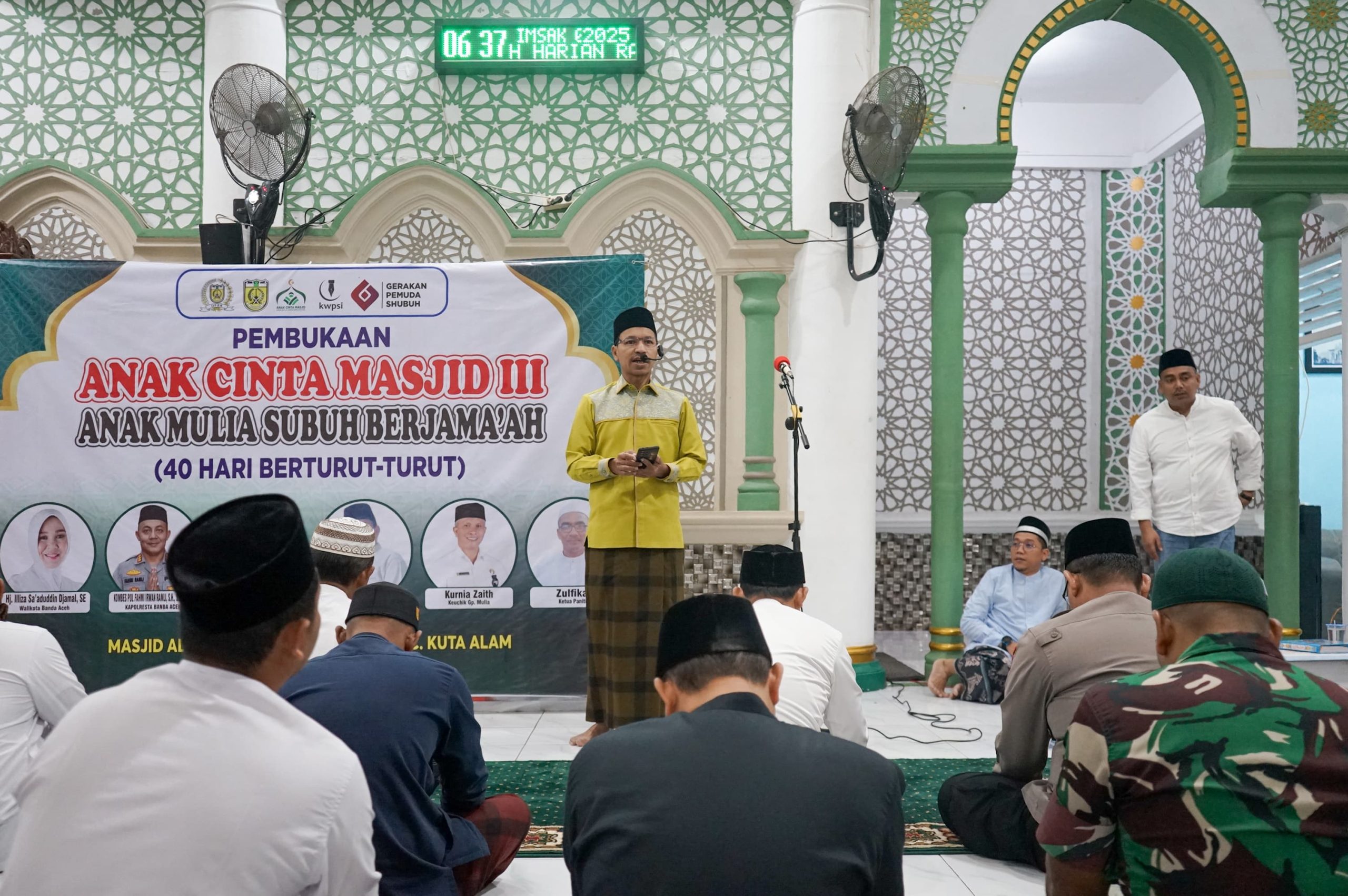 Habanusantara.net – Ketua Komisi IV Dewan Perwakilan Rakyat Kota (DPRK) Banda Aceh, Farid Nyak Umar menghadiri pembukaan kegiatan “Anak Cinta Masjid III Anak Mulia Subuh Berjama’ah” di Masjid Al Mukarramah, Gampong Mulia, Kecamatan Kuta Alam, Selasa (18/2/2025).