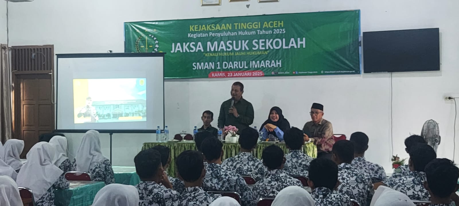 Haba Nusantara .net| Kejaksaan Tinggi (Kejati) Aceh kembali melanjutkan program Jaksa Masuk Sekolah (JMS) dengan mengunjungi SMA Negeri 1 Darul Imarah, Kabupaten Aceh Besar, Kamis 13 Februari 2025