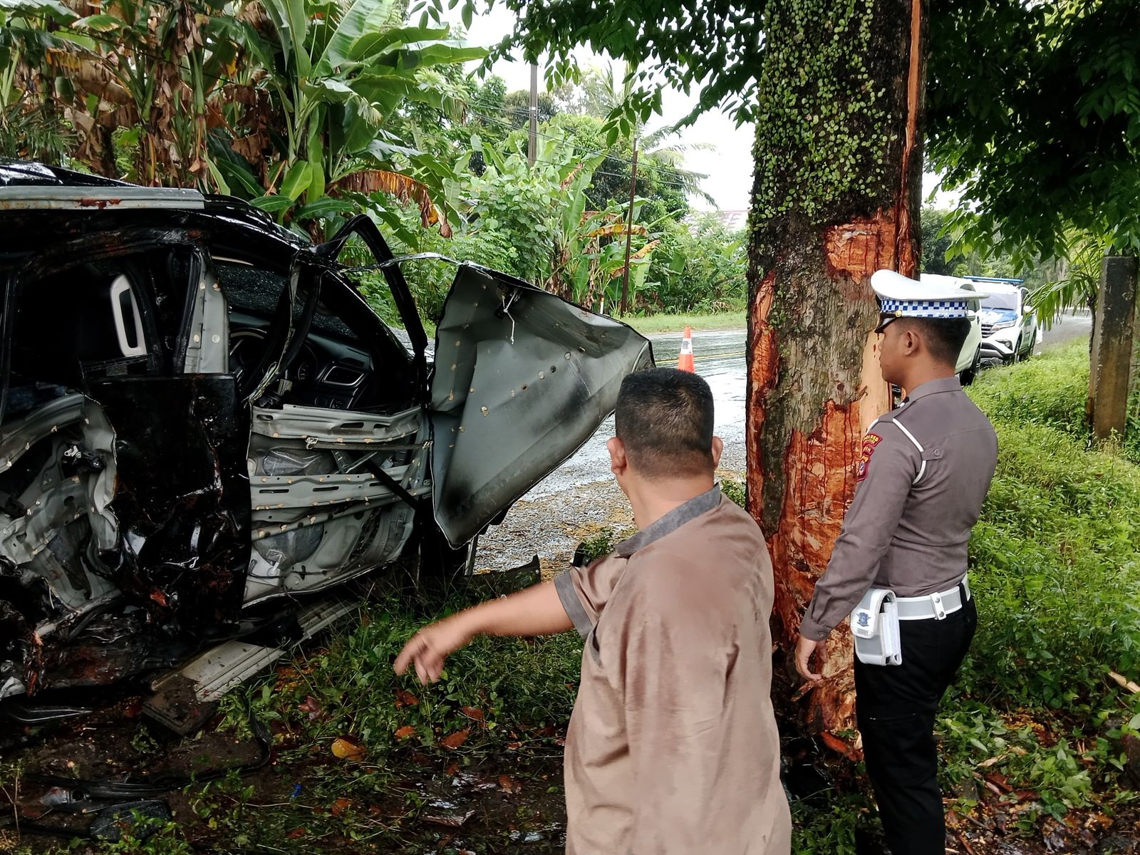 “Mobil tersebut mengalami kerusakan parah setelah menabrak pohon,” tambahnya.