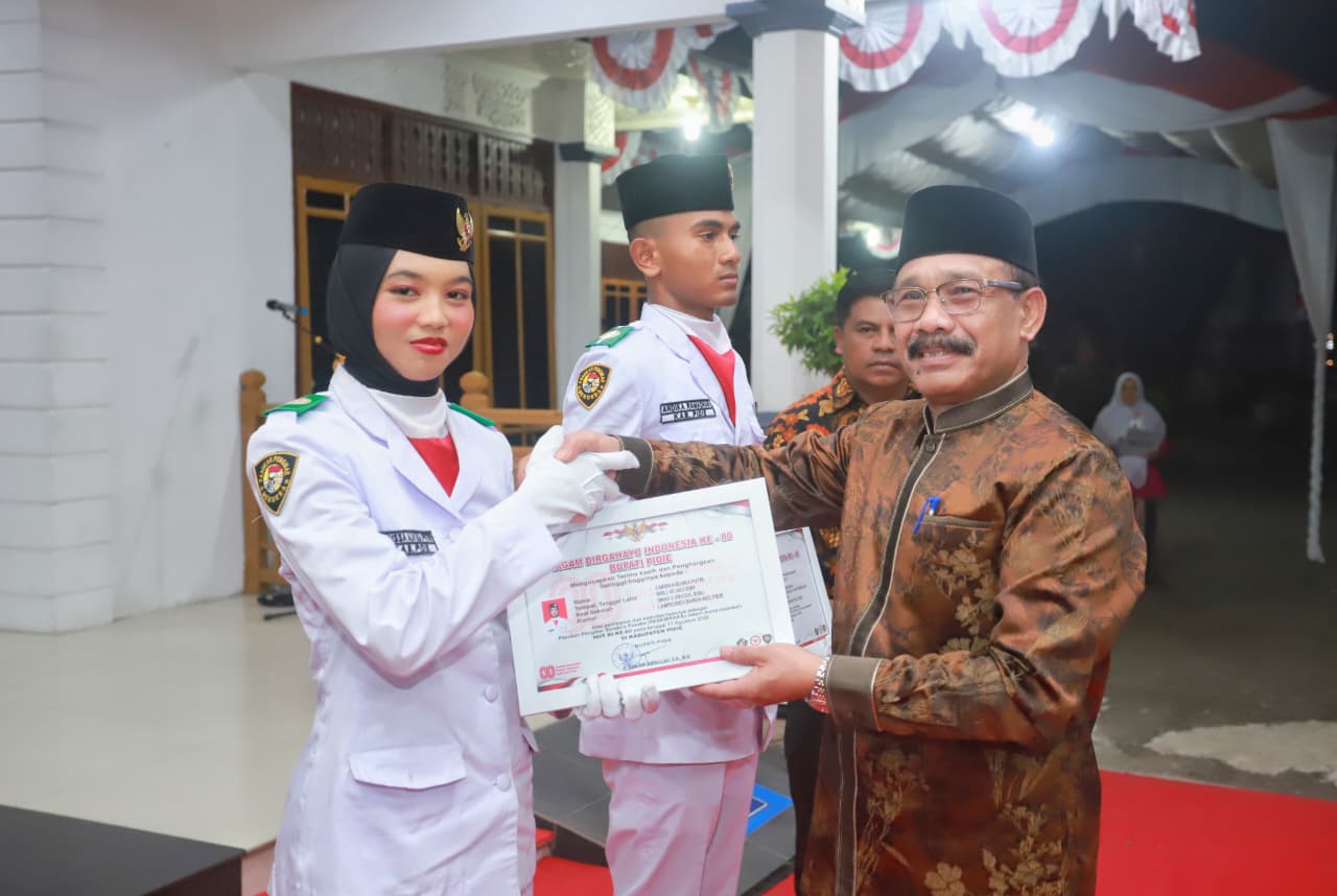 Bupati Pidie H. Sarjani Abdullah, S.H bersama Wakil Bupati Pidie Alzaizi menghadiri Malam Resepsi Peringatan Hari Ulang Tahun Kemerdekaan Republik Indonesia Ke-80 Tahun 2025 di Kabupaten Pidie, Minggu (17/08/2025) di Pendopo Bupati Pidie.